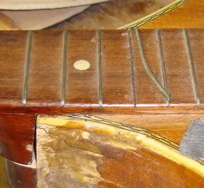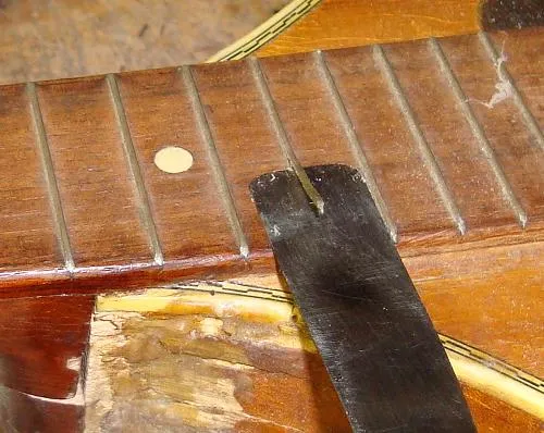 Once removed, the fret may well be bent, but this can be straightened easily for refretting. | |
