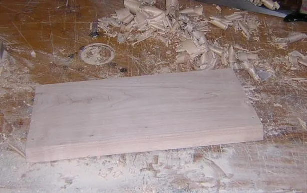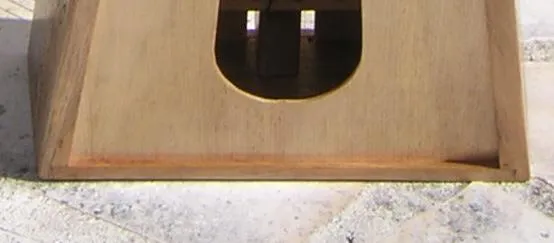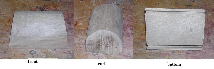 The top illustrates the problem with the whole harp.... a simple fairly small piece, but every side is angled, no corner is a right angle. Also, the top must be cut into as perfect a circle as possible. | |