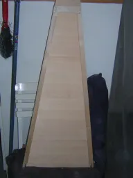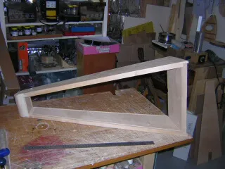 Once cut to fit, the front is glued on all sides and nailed to the base at the bottom, (in the second harp I screwed in down) and a strip fitted over the top to finish it off. |