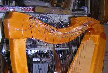 Here the harp is strung up.