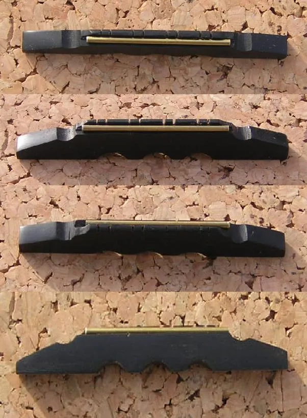 Mandolin Banjo Bridge : �John Grey� This is a hand-made replacement bridge in ebony or rosewood and brass, to fit old mandolin-banjos, and is based on an existing bridge on a John Grey mandolin-banjo. It is 90mm long, 12-15mm tall before fitting, and 8mm wide. The brass saddle is approximately 50mm long. It will suit required bridge heights of 5-12mm. It will need to be fitted, which can be achieved by sanding the foot, and fine tuned by lowering the saddle shelf.