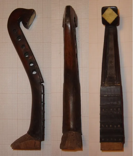 fingerboard and often an oval sound hole, with no rosette.