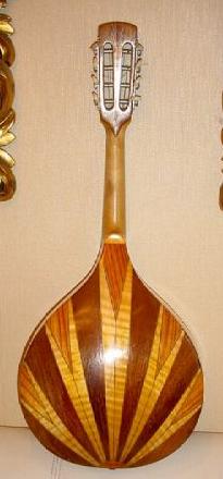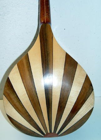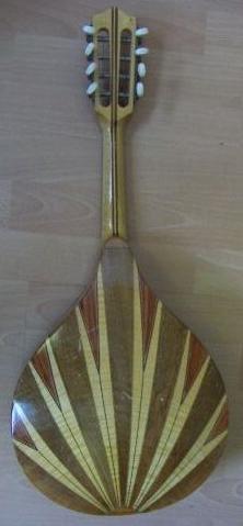 | These arch back mandolins are typical of many made in Germany in Markneukirken. The back is often made in contrasting woods, and is domed. | |||||