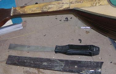 fingerboard is removed in one piece, leaving a sound neck ready for
