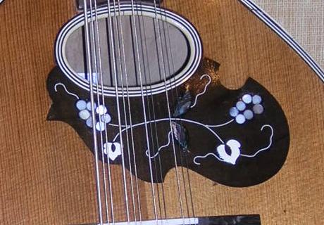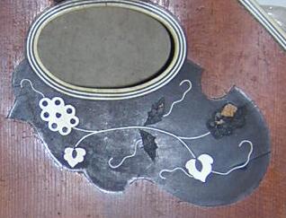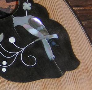 Inlay is usually made from Mother of Pearl and/or Abalone, with a variety of plastic or 'german silver' lines. |