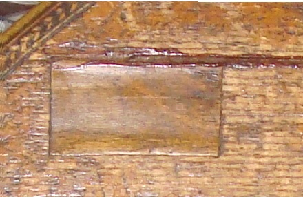 The first job is was to remove the patch, and clean out the old glue and wax... visible here is also the sloped edges top and bottom, which will give a much bigger gluing surface. |