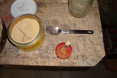 I mix using a small quantity of powder in a bottle top, you dont need too much, and I add water with a dropper. Mix it up to the consistency of toothpaste. It can be applied with a small piece of wood or small knife..... | ![]() |