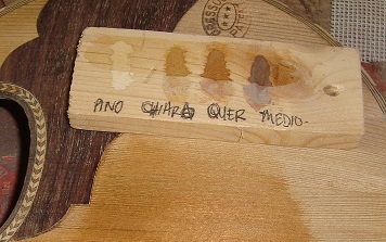 | The mastic comes in 4 colours, light, blond, dark and exotic, each successively darker. It is necessary to use a little of the finish to be used on the wood first, as the wood will darken once it is applied. In this case the colour will most resemble 'chiaro'. |