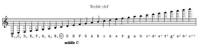 Care should be taken when using these charts..... I have set up the tunings below to match the English chart, but Helmholtz system is often seen as well. Middle C is still the same note. |