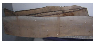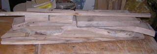 off like this, several rough-cut planks of maple and walnut, from the