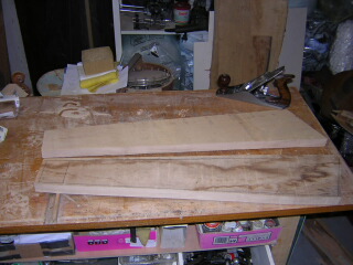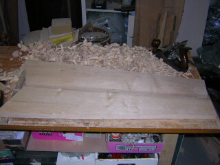 Here the sides are being planed down to thickness by hand from the 30mm planks, having been rough cut by saw and on the bandsaw. Once that was done, I rough sanded with 80 nd 180 grit, to give a good surface on which to work/draw/carve. |