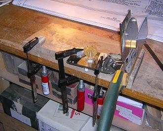 Because the sound box is angled in every direction, (it leans backwards, the sides are angled back in towards the back, and the top is much smaller than the base...) it was necessary to cut the joins with great care. Every cut was angled precisely, and by hand it was almost impossible to get them all right. It have to admit I did look around for a bit of kit that would allow me to do this more accurately than my angle guide........ but found nothig that would fit the bill without costing me a fortune. |