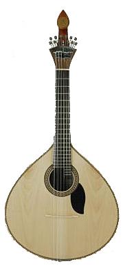 The Coimbra guitarra has a teardrop or shield type head design. It has a string length of 470mm which allows it to be tuned in the Coimbra style two frets lower, than the Lisboa tuning. This tuning is associated with the music and song of the University of Coimbra. In recent years some Lisboa fado guitarists also have been using this longer scale instrument to accompany fado. Overall, the Coimbra guitar is of simpler construction than the Lisboa guitar. The Coimbra guitar has a more accentuated bass sound. |