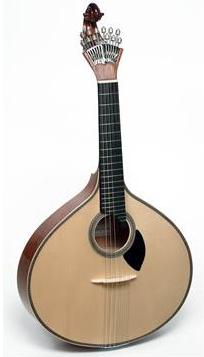 The Lisboa guitarra (Lisbon) has a scroll type head (which is much like a violin head). It has a string length of 440mm or 458mm which allows it to be tuned in the traditional fado tuning. This instrument is the typical guitarra used to accompany fado singing in Lisboa, and for playing Lisboa style variations. The Lisboa guitar has a narrower neck, smaller string spacing and a slightly shorter scale. The Lisboa guitar has a resonant bell-like sound that the Coimbra guitar lacks. | ![]() |