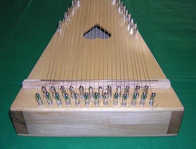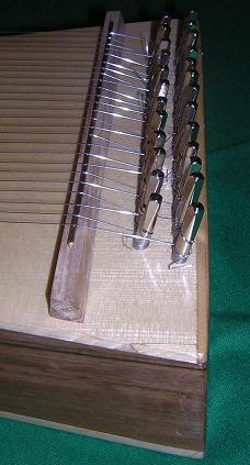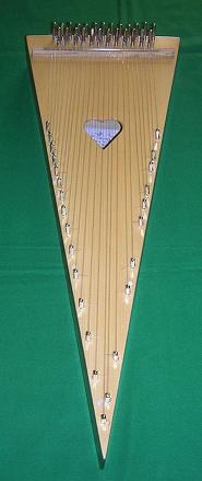 2. Pinblock: walnut, left over from a harp project (sides as well) 3. Soundhole: I made mine heart shaped, because..... 4. Hitch Pins: as above 5. Bridge: 6. Saddle: 7. Soundboard: I used spruce left over from a mandolin top. 8. Bow: shorter than a violin bow, about ??mm long. |