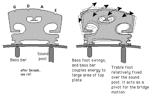 As the bridge transmits the vibrations to the body of the