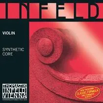Thomastik Infeld Red Set: There are two E strings. The gold-plated E string and the 'silver'. The rest have a composite core, and a first winding consisting of an alloy designated 'Natural Alloy'. Then G string is wound in pure silver, and the A and D strings with an alloy called hydronalium. Retail around �40 |