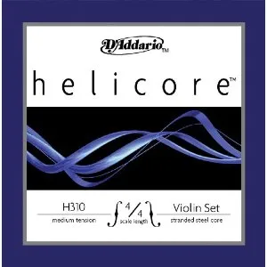D'Addario Helicore Scaled to fit 4/4 size violin with a playing length of 13 inches (328mm) Plain steel E, and multi-stranded steel core in other strings, resulting in optimal playability while producing a clear, warm tone. The smaller string diameter provides quick bow response. :Retail around �18 |